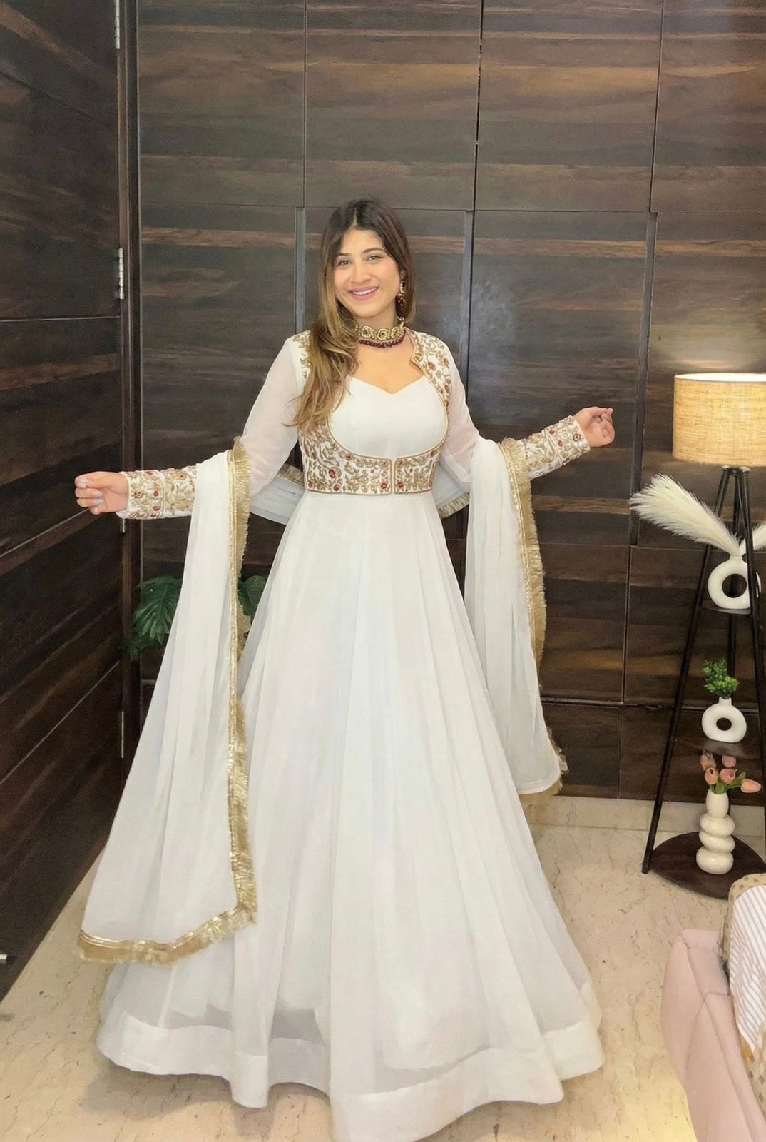 Maxi Anarkali Fabric : pure Faux Georgette. ( Fully Sleeves )