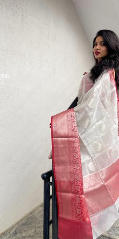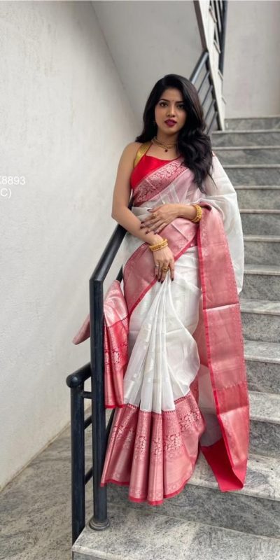 White Soft Lichi Silk Lace Work Lace Border Saree