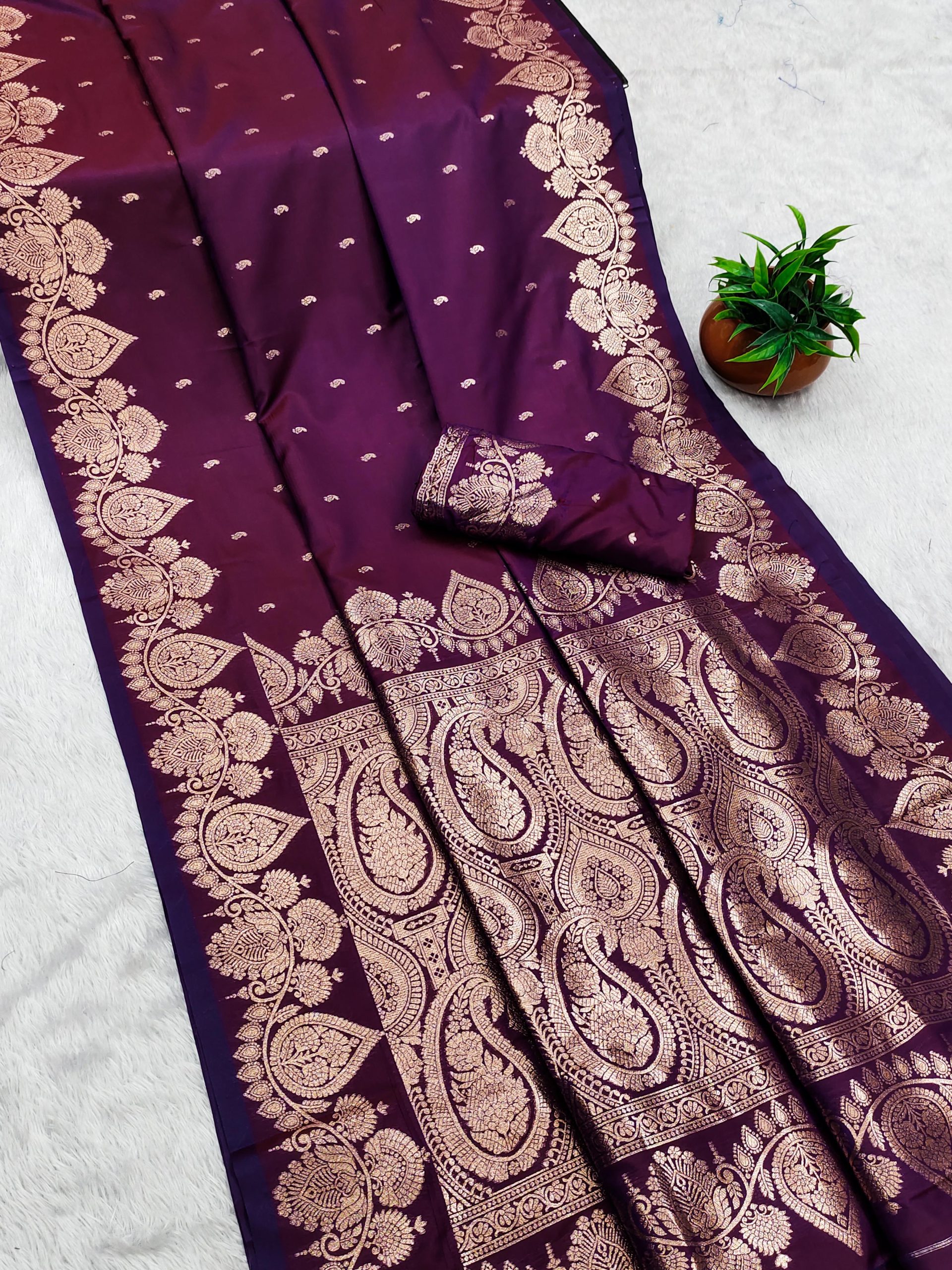 Saree :- Soft And pure banarasi silk saree with self weaving design all over the saree & zari weaving Contrast Matching Rich pallu with zari weaving unique border & heavy Rich Pallu.