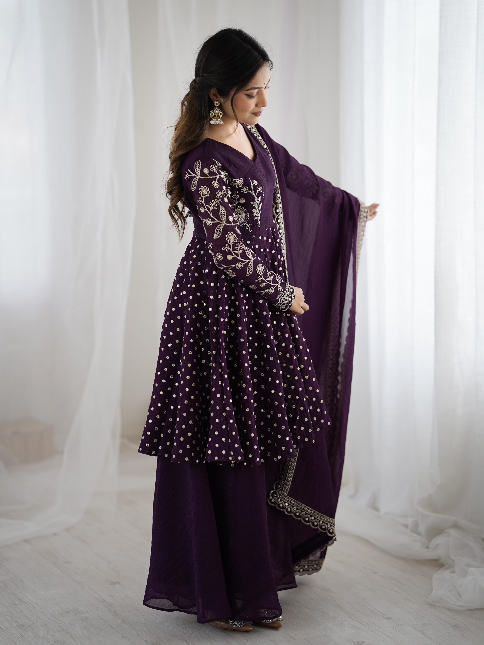 Wine Crunchy Silk Embroidery Work Salwar Suit