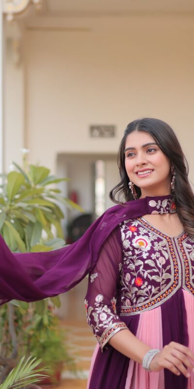 Fabrics | Gown Fabric:- Fox Georgette Work:- sequence Thread Embroidery Work Inner:- Micro Cotton Flair:-3.50 mtr Size:-Free Size Semi Stitched (Fully Stitched)Dupatta Fabric:- Fox Georgette Work:- sequence Thread Embroidery Work Size:- 2.30 Meter |