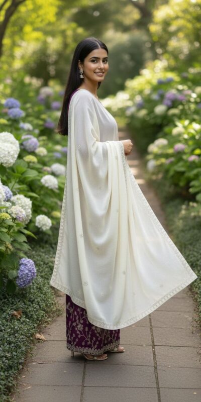Top Top Fabric :Pure Organza Silk With Heavy Embroidery Sequence Work With Full Sleeve Top Inner :Heavy Micro Cotton Top Length : 39-40 Inch Top Size : Free Size Semi Stitched (FULLY STITCHED READY TO WEAR) Palazzo Palazzo Fabrics :Organza Silk With Embroidery Sequence Work With Elastic (Full stitched) Palazzo Length:40-41 Inch fully stitched Dupatta Dupatta Fabric :Tabby Organza With Embroidery Sequence Work With Lace Border |