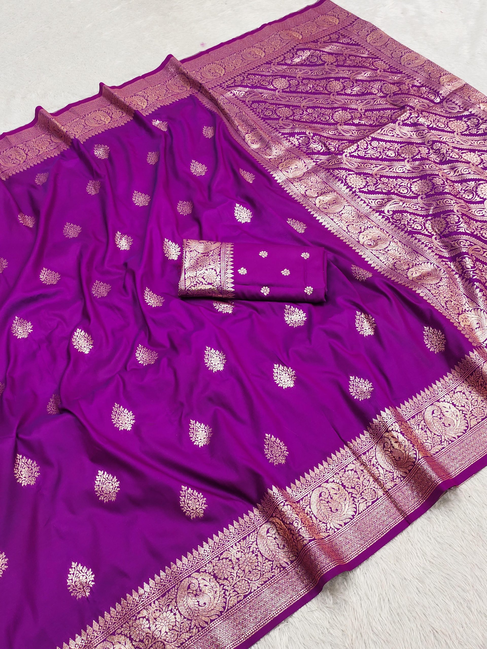 Saree :- Soft banarasi Cotton silk saree with gold zari weaving design motifs all over the saree & zari weaving rich pallu with zari weaving contrast border.