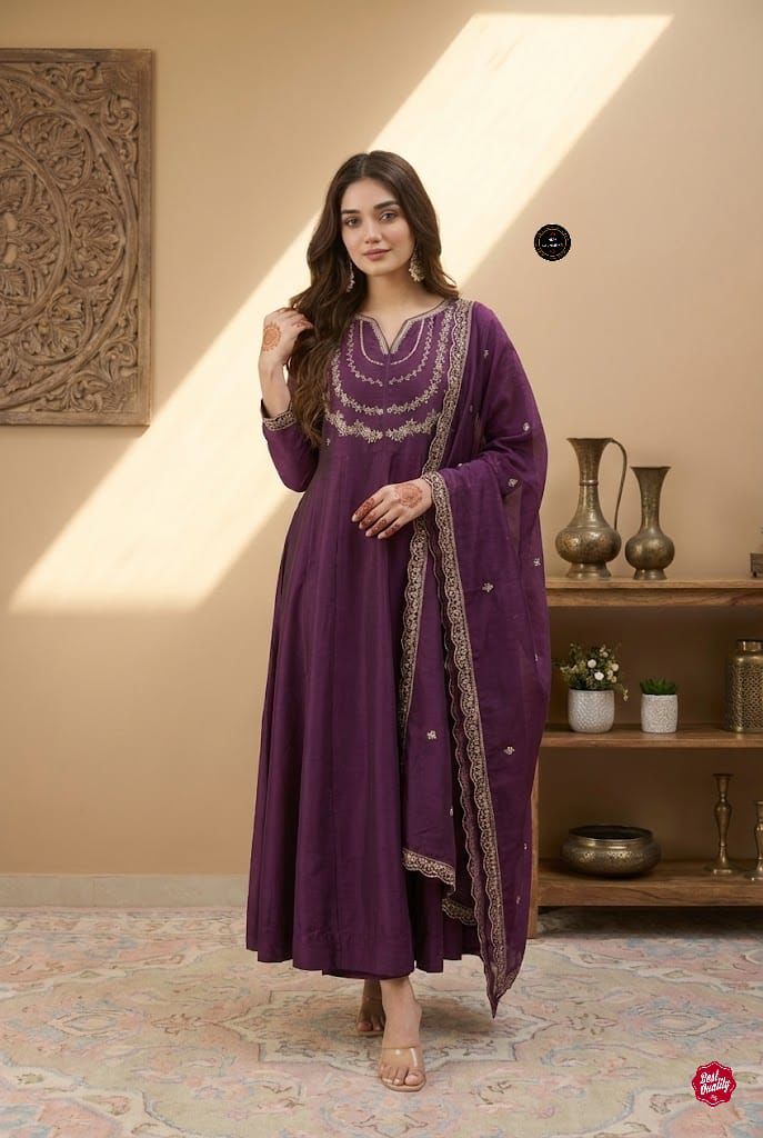 Simple sober and beautiful gown cum dress . Design as per latest trends . Apt for parties . Same as shown in pic . Happy to buy this dress from . .