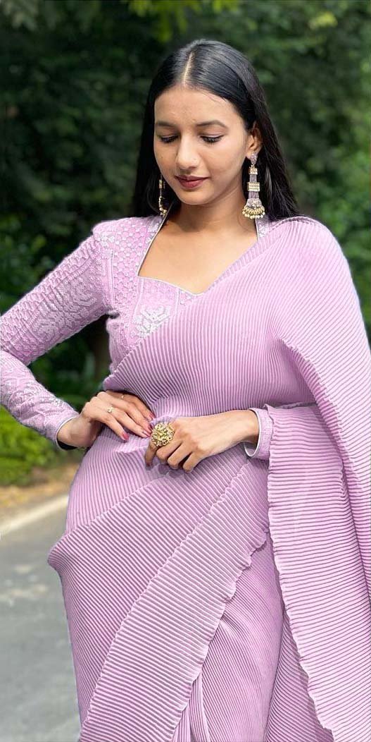 Women’s Party Wear Superb Baby Pink Color Pleating Work Saree