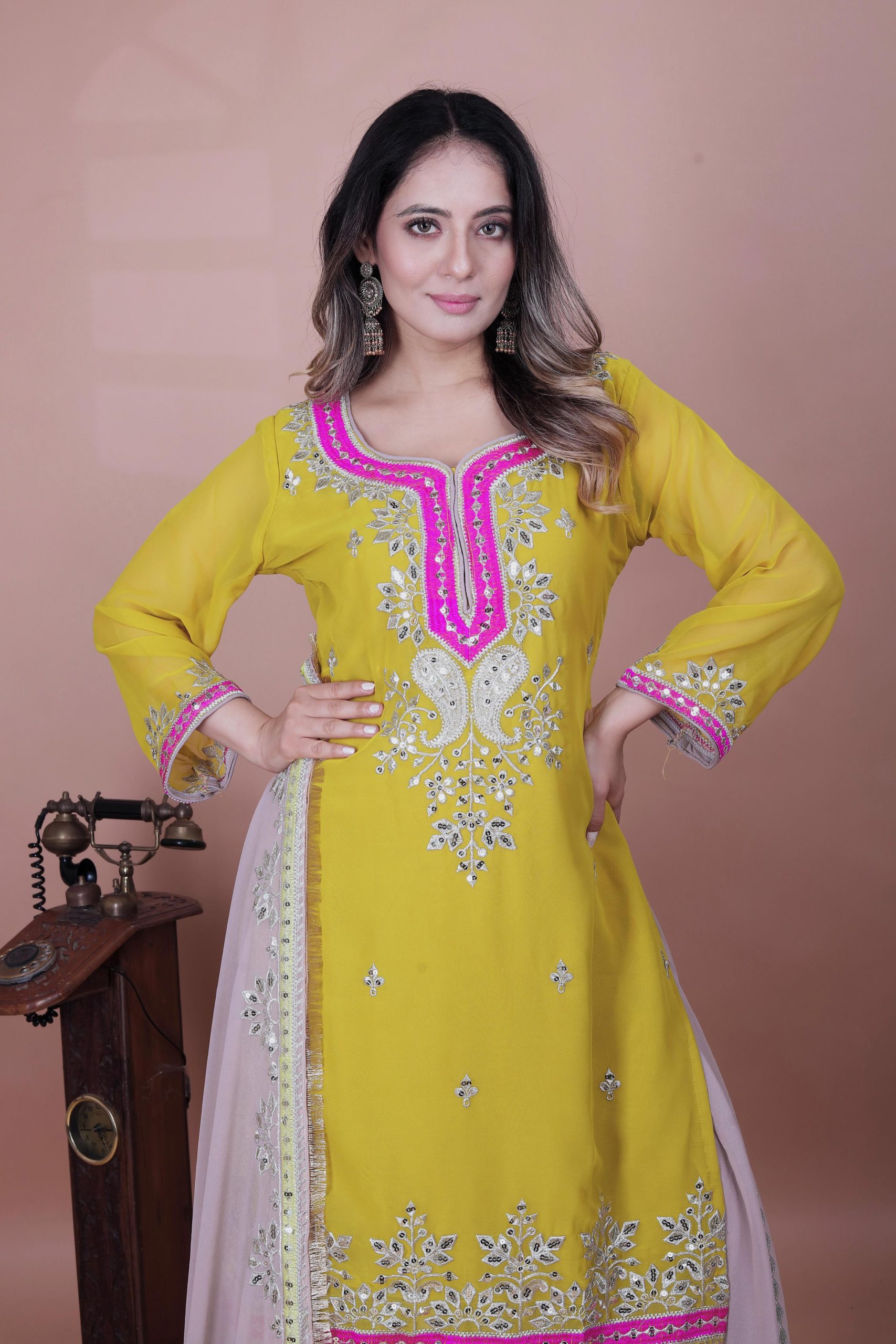 Yellow Faux Georgette 5mm Embroidery Salwar Suit