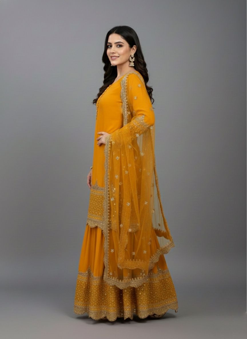 Yellow Faux Georgette Embroider Salwar Suit