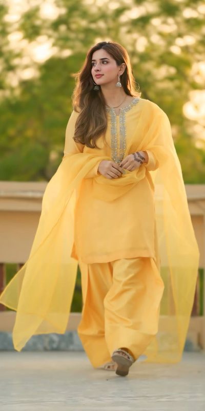 Yellow Faux Georgette Embroidery Work Salwar Suit