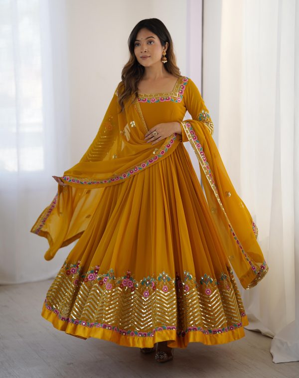 Yellow Georgette Multi Thread Work Gown