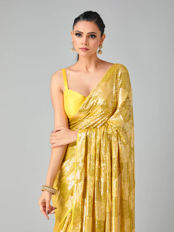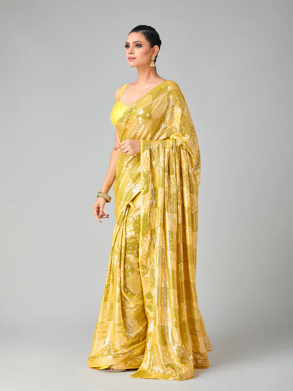 Yellow Georgette Sequins Work Saree