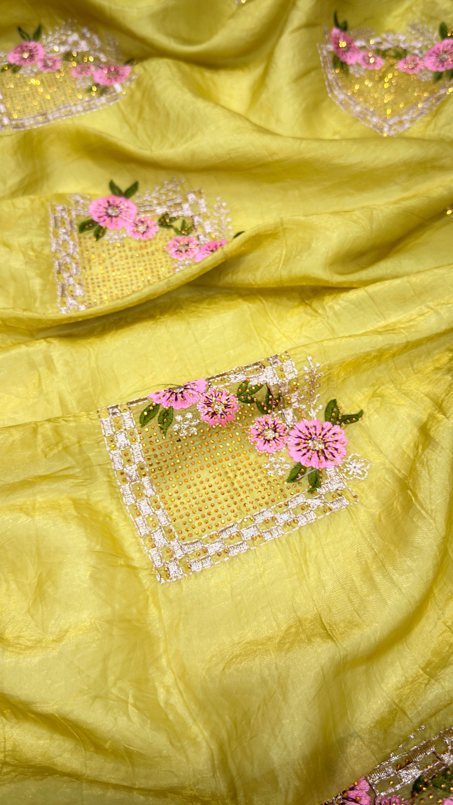 Yellow Paper Silk Crush With Embroider Saree