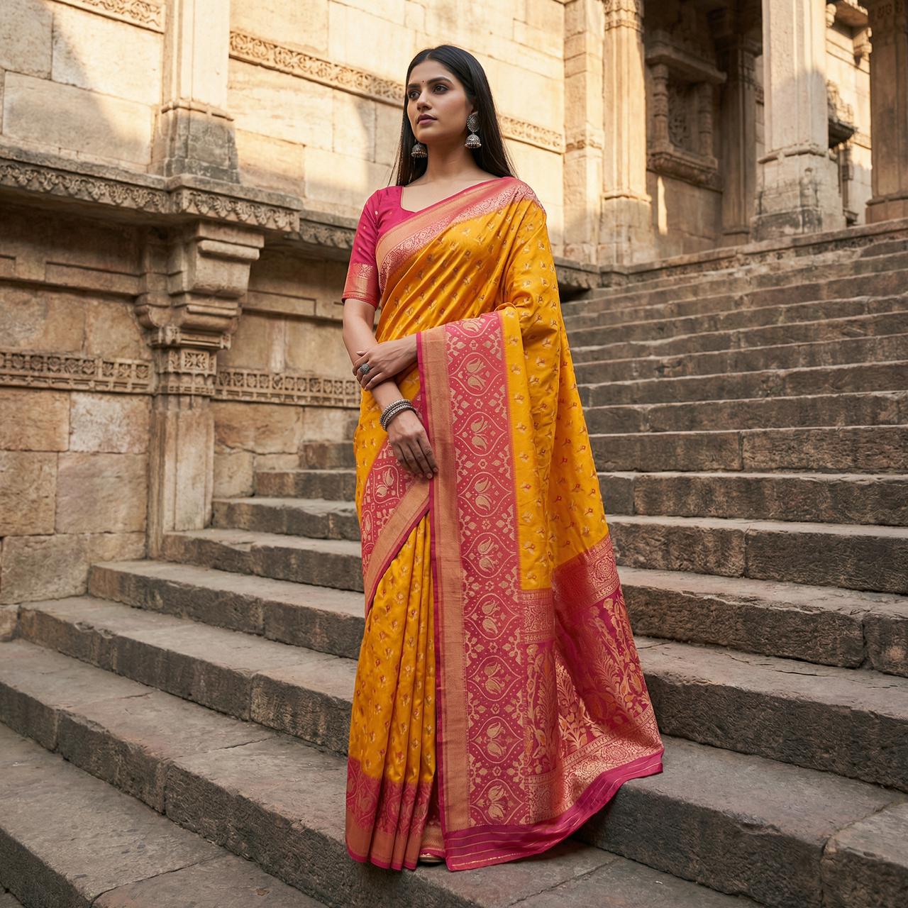 Yellow Pochampalli Silk Zari Woven Work Saree